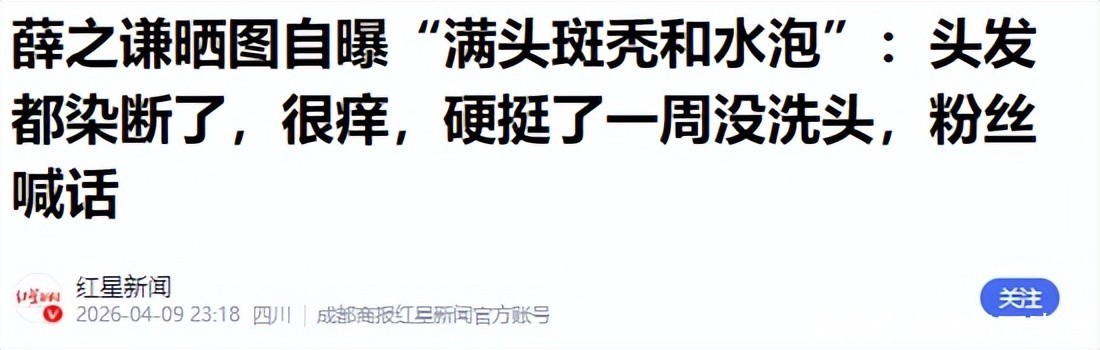 2.薛之谦晒图自曝“满头斑秃和水泡”:头发都染断了,很痒,硬挺了一周没洗头,粉丝喊话——红星新闻