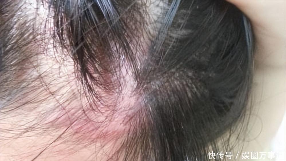 因为频繁染发造型,导致头皮严重受损。