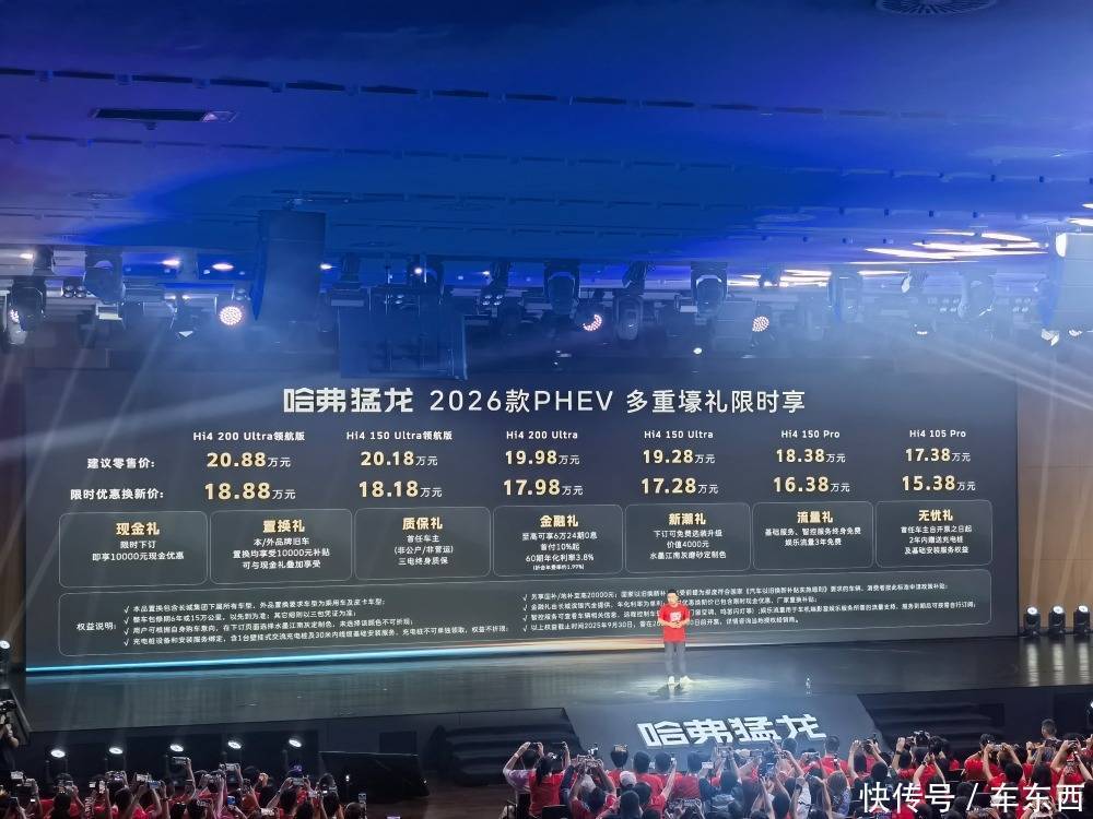 此次上市哈弗猛龙2026款共推出了5款车型,建议零售价为17.38-20.88万元,限时优惠换新价为15.38-18.88万元。